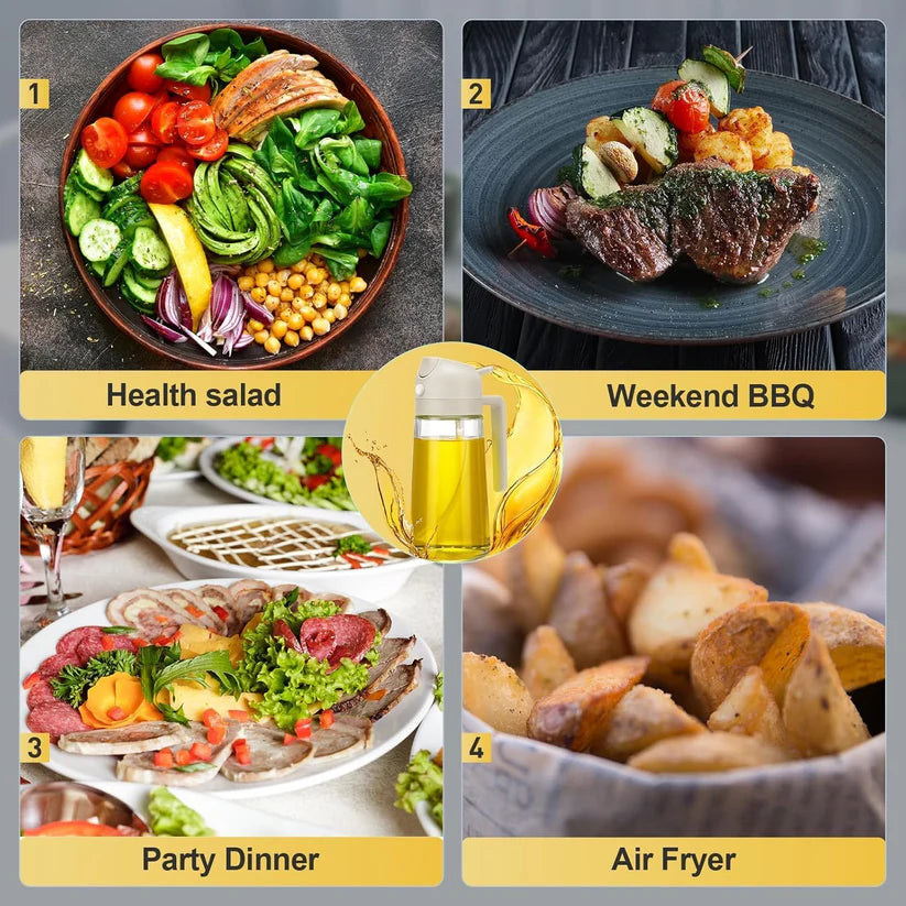 - ✅ 2-in-1 Design: Spray evenly for salads or pour smoothly for frying.